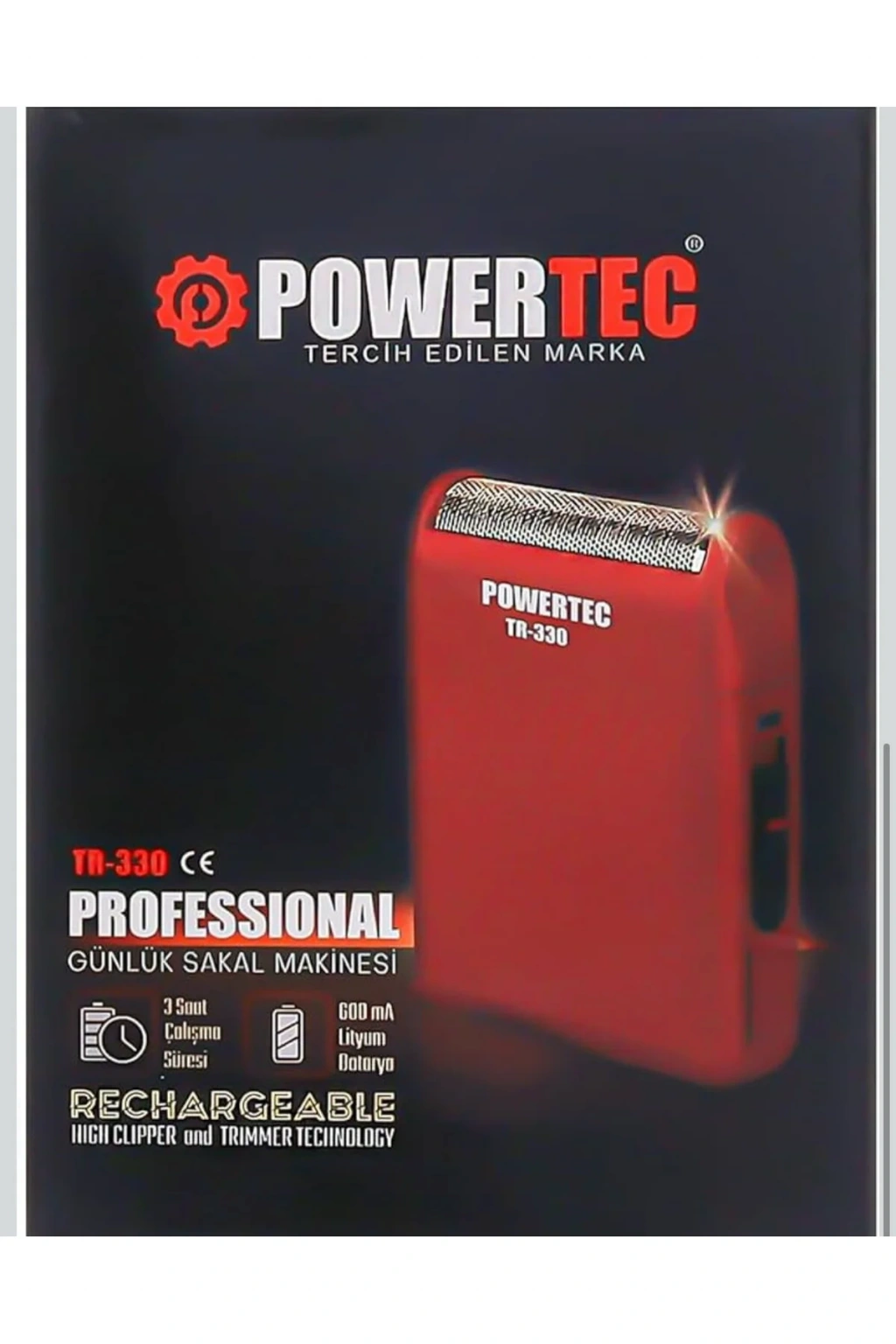 Powertec TR-330 Sakal Tıraş Makinası — kablosuz özgürlük ve uzun ömürlü performans ile günlük bakımınızı kolaylaştırır. Modern tasarımı ve pratik kullanımı sayesinde her an yanınızda taşımak için idealdir.