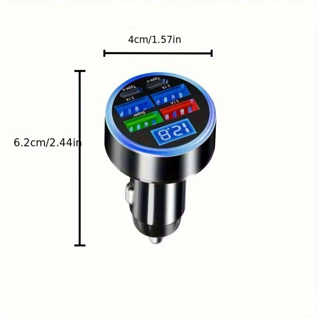 QC3.1 ve USB Tip-C 6'sı 1 Arada. Çakmaklık Araç Hızlı Şarj Cihazı