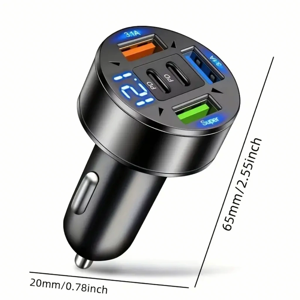 QC3.1 ve USB Tip-C 6'sı 1 Arada. Çakmaklık Araç Hızlı Şarj Cihazı